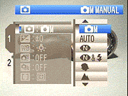 Shooting Mode: Selects from the available Shooting modes: Manual, Auto, Natural Light, Natural Light & with Flash, Portrait, Landscape, Sport, and Night - Exposure Compensation: Allows for +/- 2.0EV of exposure compensation from the metered exposure, in steps of 1/3EV.