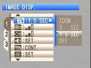 Image Display: Turns the post-capture image review screen off, or sets it to a duration of 1.5 or 3 seconds. Also can set Zoom, where the center of the focusing position is shown enlarged. - Shutter Volume: Adjusts the volume of the shutter noise in three steps, or disables it altogether.
