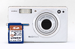 No card is included with the Kodak EasyShare V550, although it accepts SD/MMC cards; 28.5MB RAM is built into the camera.