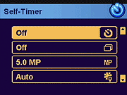 Self-Timer: Activates the 10-second Self-Timer, or disables it.