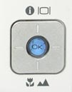 Multi-Controller and OK Button: Located in the lower-right corner of the rear panel, this square-shaped four-way rocker button with central OK button navigates through menu screens and options. When the center OK button is pressed, it confirms menu selections. Outside of the menu system, the right and left buttons adjust the exposure compensation. The up button controls the LCD display, while the down button cycles between Normal AF, Macro, and Landscape focus modes.