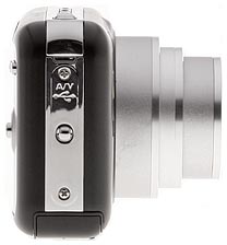The right side of the Kodak V803 (as viewed from the rear) has a very small eyelet for the wrist strap as well as a popup plastic corner that covers the AV/USB port.