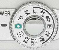 of the camera controls the main operating modes, with options for Auto, Program,