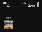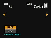 - DPOF: Marks the current image for printing on a DPOF device. Also removes the print mark. (secondary screen)