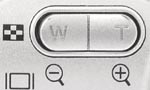 The camera's rear panel holds the remaining camera controls and function buttons, along with a big 2.5-inch color LCD monitor for previewing and playing back images, and the optical viewfinder window. As noted earlier, the Sony W1's LCD is one of the newer "transflective" units, making it amazingly readable in bright light, even direct sunlight. The LCD display reports a variety of camera and exposure settings, including the aperture and shutter speed settings (a nice bonus for those interested in how the camera will expose the image) and a three-stage battery gauge. The optical viewfinder is located above to the left of the LCD monitor, and has three LED lamps along the left edge of the window, each of which reports the current status of various camera functions. The optical viewfinder has no dioptric adjustment, but eyeglass wearers will be pleased with the high "eyepoint," allowing plenty of room for an eyeglass lens between the camera body and your eye. The camera's Zoom control is in the upper right corner, conveniently located right above nine raised bumps for better thumb traction when holding the camera. Lower right of the LCD is a Five-way Arrow pad, with small arrows pointing in four directions (Up, Down, Left, and Right) and a set button in the middle. Each serves multiple functions, navigating onscreen menus scrolling between captured images in playback mode, or activating different camera functions (Flash, Self-Timer, Quick Review, and Macro).