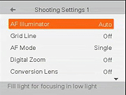 - Nine-point AF area, plus a selection of manual focus presets