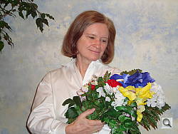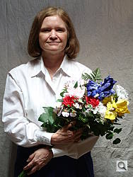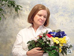 Color balance indoors under incandescent lighting was warm in both Auto and Incandescent white balance modes. We stuck with the Incandescent setting, as it had slightly less of a reddish cast. The Sony DSC-W130 required a +0.7 EV exposure compensation boost to get a good exposure, which is a little less than average for this shot. The warm cast increases the reddish tone in Marti's face, and the blue flowers appear very dark and purplish. (Many digital cameras reproduce these flowers with a dark, purplish tint.) Our test lighting for this shot is a mixture of 60 and 100 watt household incandescent bulbs, a pretty yellow light source, but a very common one in typical home settings here in the U.S.