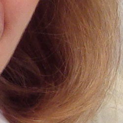 Detail. The crop above right shows moderately high noise suppression at the lowest ISO setting, with darker areas of Marti's hair showing limited detail. Individual strands become lost as shadows deepen. Noise-suppression systems in digital cameras tend to flatten-out detail in areas of subtle contrast. The effects can often be seen in shots of human hair, where the individual strands are lost and an almost "watercolor" look appears.