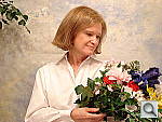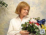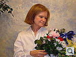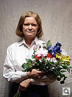 • Overall color: Matching summer sunlight here in the South, the lighting in this scene is a bit more yellow-tinged than that in many parts of the country, or in the fall or winter. - So there may be an overall warm cast to the color. That said though, there's a fair range of color represented in the bouquet, presenting a tough challenge for the cameras. For some reason, the blue flowers seem particularly hard to handle, with many cameras rendering them as purple. (In real life, they're a light shade of navy blue, with just a bit of purple in them.)