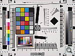 Kodak Q60 target: This is another target that's perhaps not well enough controlled for quantitative measurements between cameras, but one that does have several useful characteristics nonetheless. For instance, it provides a good reference for the handling of various colors representative of common skin tones (the tan and brown patches along its right side), as well as of lighter, less-saturated tints of both additive and subtractive primaries (red, green, blue, cyan, magenta, and yellow). The MacBeth chart's colors lean heavily toward highly saturated values, and there aren't any pastel tones present at all. In the past, we've found that cameras with contrasty tone curves sometimes have trouble with the pastel tones in the Q60 target, making it a valuable reference that we'll continue to include.