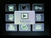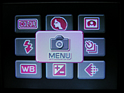The DiMAGE X31's user interface is very straightforward, as the camera employs automatic exposure at all times. A simplified menu screen debuted with the X20, and continues with the X31, with a 3x3 array of menu options displayed like virtual buttons. The center "button" accesses the main mode menu, which is laid out more like a traditional list menu screen. The X31 has very few external controls, meaning you must call up the LCD menu to adjust most camera settings. This is somewhat cumbersome, but you can customize the right and left directions on the Five-way toggle to control either exposure compensation, flash, drive mode, or white balance, reducing your dependence on the menu system. In both capture and playback modes, the camera's main menu is divided into three pages, delineated by subject tabs at the top of the screen. The Mode switch lets you quickly switch between Movie and Record modes, while an external button accesses Playback mode. Considering the camera's automatic exposure control and limited user options, most users should be able to become familiar with the camera's operation in half an hour or less. (Experienced users may not even need to crack the manual.)