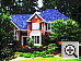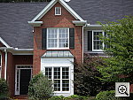 | Far-Field Test Moderate resolution, though pretty good detail. Slightly limited dynamic range and low exposure. This image is shot at infinity to test far-field lens performance. NOTE that this image cannot be directly compared to the other "house" shot, which is a poster, shot in the studio. The rendering of detail in the poster will be very different than in this shot, and color values (and even the presence or absence of leaves on the trees!) will vary in this subject as the seasons progress. In general though, you can evaluate detail in the bricks, shingles and window detail, and in the tree branches against the sky. Compression artifacts are most likely to show in the trim along the edge of the roof, in the bricks, or in the relatively "flat" areas in the windows. This is my ultimate "resolution shot," given the infinite range of detail in a natural scene like this, and the X31 did fairly well with it for its 3-megapixel class. Leaf patterns are distinct in the tree limbs above the roof, as well as in the shrubbery in front of the house. However, leaf details appear somewhat pixilated and noisy. There's only a slight softness to all four corners, but it does extend into the image area a fair amount. The camera picks up the stronger details in the bright white paint surrounding the bay window, a trouble spot for many digicams, but detail is only moderate in the shadow area above the front door, evidence of a limited dynamic range. Overall color looks good, though slightly reddish, and the image is just slightly underexposed. The table below shows a standard resolution and quality series, followed by an effects series. Resolution Series: