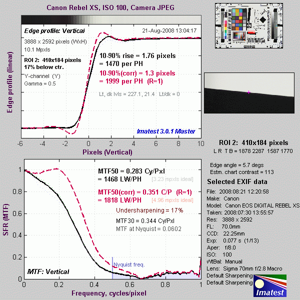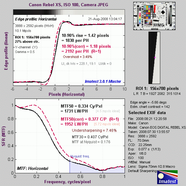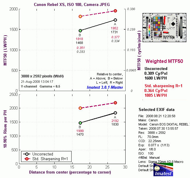 Here's some of the results produced by Imatest for the Canon Rebel XS: