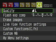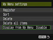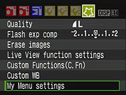 Canon Rebel XS My Menu Options