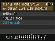 Here are screen-shots of the Canon Rebel XS's Setup Menus 1, 2 and 3. Note that Setup Menu 3 is actually a Custom Functions Menu. | |||