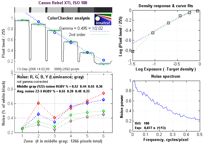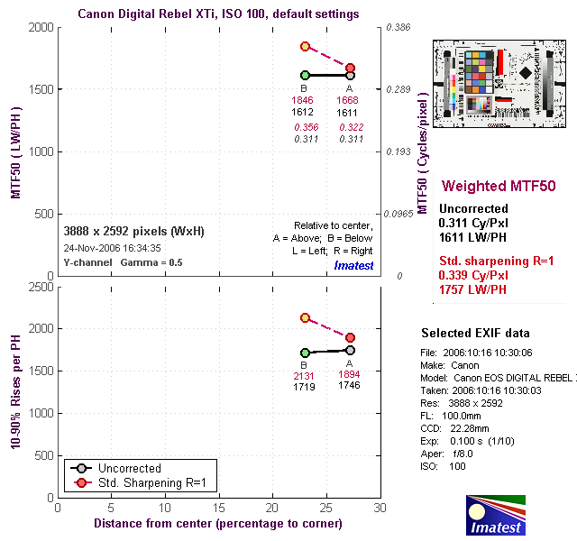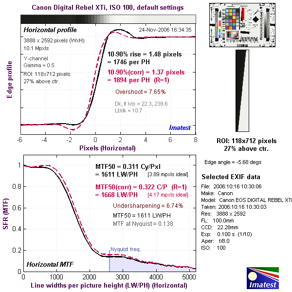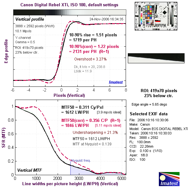 Here are some of the results produced by Imatest for the Canon Rebel XTi: