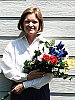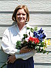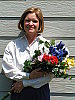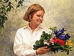 The extreme tonal range of this image makes it a tough shot for many digicams, which is precisely why I set it up this way, and why I shoot it with no fill flash or reflector to open the shadows. The object is to hold both highlight and shadow detail without producing a "flat" picture with muddy colors, and the Dimage Z2 produced a good exposure, though with high contrast. The shot at right was taken with a +0.3 EV exposure compensation adjustment and the Z2's contrast control adjusted to its "low" setting. Midtones are reasonably bright, but contrast is still a bit high. Still, eve though they're pretty bright, the highlights do hold onto some detail. I chose the Auto white balance setting for the main exposure series, as the Daylight setting had a magenta cast, and the Manual setting was much too warm. Marti's skin tones are pretty good, but the more reddish parts of her face tend to get very red - The color saturation seems higher for reds than for other colors. The blue flowers in the bouquet are almost exactly right, just slightly darker than in real life. (Many digicams have a lot of trouble with this blue.) The strong reds and greens look good as well, although I'd say that overall saturation is a little high. Resolution is high, and detail is strong in the flower bouquet as well as in Marti's features, although there's a little loss of detail in Marti's hair from the anti-noise processing. Detail is pretty good in the shadows, though image noise is moderately high there. All in all, a very good job, although I'd like to see the contrast adjustment control have a little more range in the low-contrast direction. To view the entire exposure series from zero to +1.3 EV, see files Z2OUTAP0.HTM through Z2OUTAP4.HTM on the thumbnail index page. Contrast Series: The Z2's contrast adjustment did a pretty good job of creating a more even exposure at the low setting, but it seems to affect the overall exposure quite a bit. - Ideally, dropping the contrast wouldn't affect the midtone exposure any, but in the case of the Z2, it seems to pull down the midtones along with the highlights.