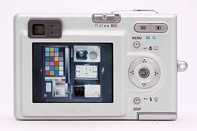 For composing your shots, the EX-Z3 features a tiny, real-image optical viewfinder as well as a generous 2.0-inch, TFT color LCD monitor (which takes up most of the back panel). The LCD monitor reports basic camera settings information, including camera mode, the number of available images, focus mode, date and time, and battery power, among various other mode information. Additionally, it reports the selected aperture and shutter speed, whenever the Shutter button is halfway pressed. (So, though you can't control the actual exposure, you can at least get a good idea of what it will be, and whether any exposure compensation is needed.) The Display button not only controls the amount of information on the LCD display, but also enables a small histogram for checking exposure.