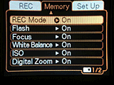All of the EX-Z3's controls are on the rear panel, along with the optical viewfinder eyepiece and large LCD monitor. At the top of the panel is the Mode switch, which selects between Playback and Record modes. Lining the right side of the rear panel are the Zoom, Menu, Set, and Display buttons, along with a Multi-Controller in the center. In addition to navigating menu screens, the Multi-Controller access a number of camera functions, depending on which arrow keys are pressed. The EX-Z3's optical viewfinder is quite small, with a moderately high eyepoint for eyeglass wearers. Two LED lamps on the right side of the eyepiece report camera status, such as when focus is set, the flash is charging, the camera is writing to the memory card, etc. (A full listing of the light patterns and their meanings is in the instruction manual.)