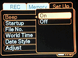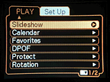 In Playback mode, the right and left keys scroll through captured images. When an image has been enlarged, all four keys pan around within the view. When viewing images normally, the down arrow displays the delete menu, with options for deleting the current file or all files. During normal playback display, the up arrow activates the Album setting menu, for creating photo albums of captured images. You can choose a layout option, background color, text style, usage (Web, Print, or View), or let the camera automatically set up the album. (This option is also included in the accompanying software, and can be setup on a computer.) This is a pretty nifty camera feature, one that I've not seen anyone but Casio market. (Some of their earlier cameras had Album options as well.) The ability to turn a camera full of pictures into a web-ready photo album with no computer intervention at all is pretty impressive!