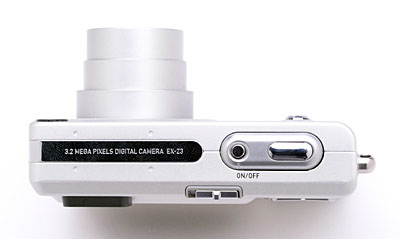 The EX-Z3's top panel is mostly flat, although a small ridge protrudes from the surface on the right side. The Shutter and Power buttons are located on this ridge, the power button recessed flush with the surface to help prevent accidental actuation when the camera is carried in a pocket.