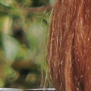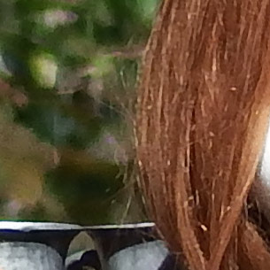 Score this round of hair fine detail and background crops to the Canon SX50, followed by the Panasonic FZ70. The rest either suffer from a lack of detail, unnatural background appearances from the image processing, or both. And for the overall score of the entire shot, these two cameras are joined by the Fuji S1 and the Nikon P600 as being able to deliver good overall image quality for this subject matter. The remaining four models are either too soft or suffer from too many unwanted processing artifacts and smearing to be called good.