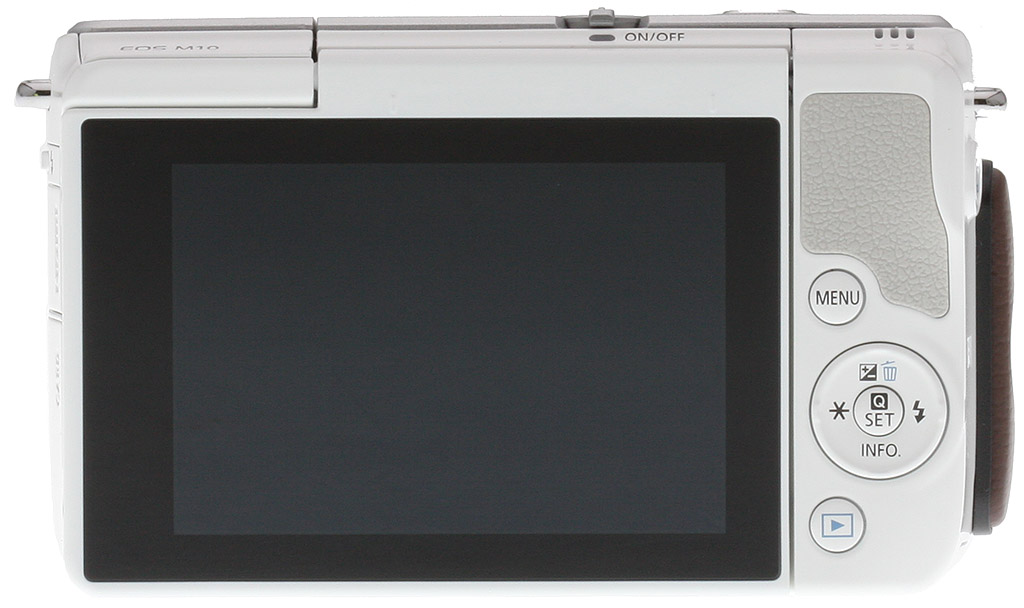 The control dial has a nice feel to it, but it would be good to have a second one somewhere on the camera, even if it were around the directional buttons like there is on the EOS M3. You'll notice that there's not a traditional mode dial on the M10; selecting modes like Program, Aperture-priority, Shutter-priority and Manual requires the use of the touchscreen. This isn't too bad, however, because the touchscreen works really well. The 3.0-inch display has 1,040,000 dots, and the 180-degree upward tilting mechanism moves smoothly and feels surprisingly robust.