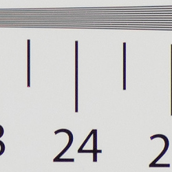 In the table above, we compare a best quality in-camera JPEG taken at base ISO using default noise reduction and sharpening (on the left) to the matching RAW file converted with Adobe Camera Raw 9.1 via DNG Converter 9.4 using default noise reduction with some strong but tight unsharp masking applied in Photoshop (300%, radius of 0.3 pixels, and a threshold of 0).