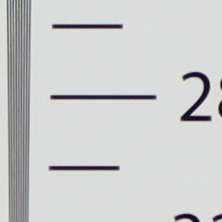 Our resolution chart showed fairly sharp, distinct line patterns up to just under 2,800 lines per picture height horizontally and to just under 2,800 lines vertically. Some may argue for higher numbers, but lines begin to merge at this resolution, and some aliasing artifacts in the form of moiré patterns can be seen even at lower resolutions. Extinction of the pattern occurred between 3,400 and 3,600 lines. An Adobe Camera Raw converted .CR3 file produced about the same resolution as the in-camera JPEG, though it contains more false colors. Use these numbers to compare with other cameras of similar resolution, or use them to see just what higher resolution can mean in terms of potential detail.