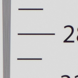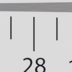 In the table above, we compare a best quality in-camera JPEG taken at base ISO using default noise reduction and sharpening (on the left) to the matching CR3 file converted with Adobe Camera Raw 9.1 via DNG Converter 10.4 using default noise reduction with some strong but tight unsharp masking applied in Photoshop (300%, radius of 0.3 pixels, and a threshold of 0).