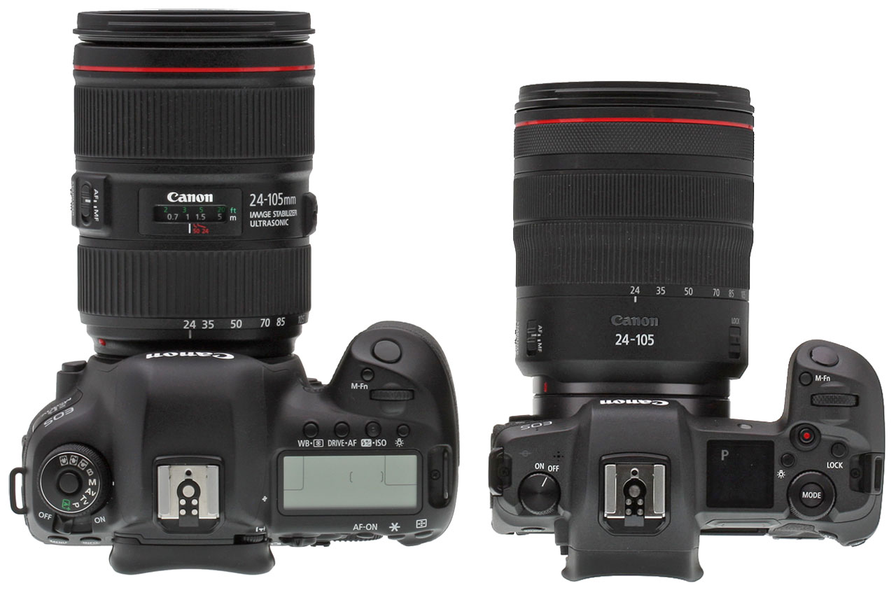 5D IV with EF 24-105mm f/4L IS II USM versus EOS R with RF 24-105mm f/4L IS USM. |