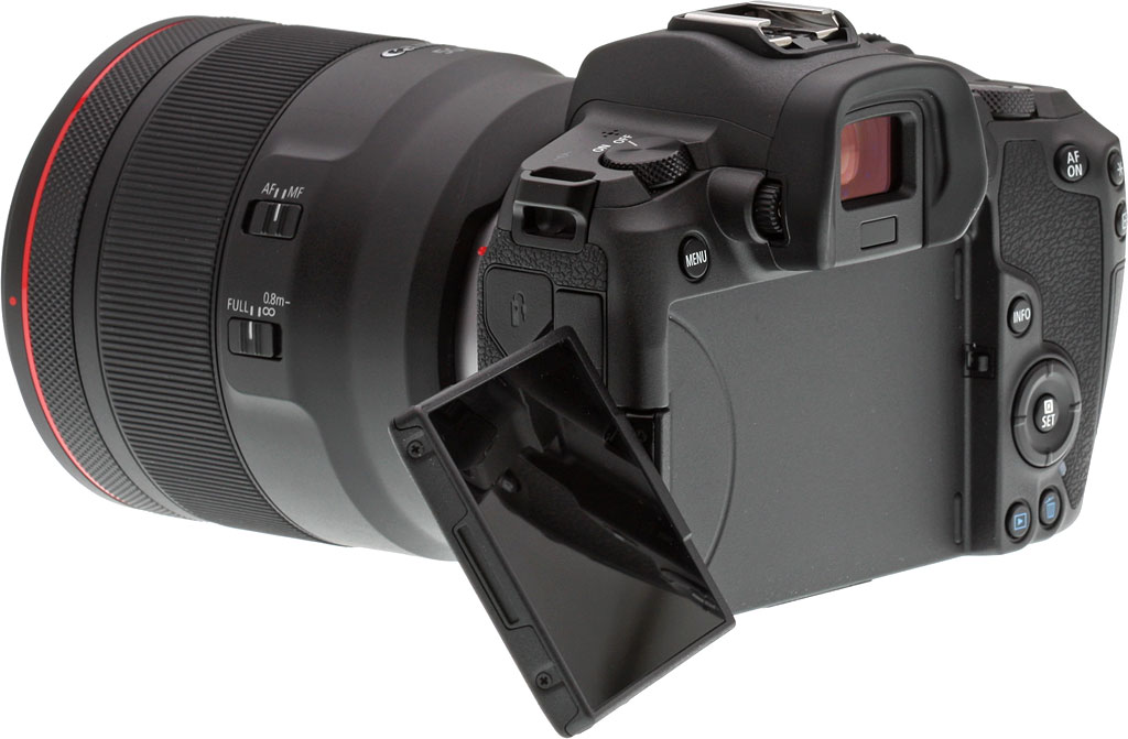 Much like many of Canon's EOS DSLRs -- and a differentiating point compared to Sony's Alpha mirrorless cameras -- the EOS R sports a top-deck status display that shows shooting modes and exposure information. Unlike the current Sony Alpha and Nikon Z-series mirrorless cameras, the Canon R also features a flip-out, fully articulating rear LCD screen instead of an up/down tilting display. The EOS R uses a 3.15-inch touchscreen TFT LCD that offers approximately 2.1-million dots of resolution and provides 100% field of view coverage.