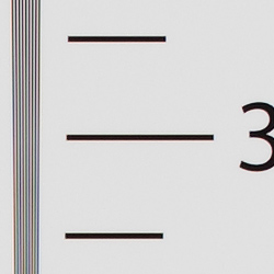 A best quality JPEG of our resolution chart showed sharp, distinct line patterns up to just over 3,200 lines per picture height horizontally and to just under 3,200 lines vertically. Some may argue for higher numbers, but lines begin to merge at this resolution, and some aliasing artifacts in the form of moiré patterns can be seen as low as about 2,600 lines. Complete extinction of the pattern did not occur before the 4,000 line limit of our chart. An Adobe Camera Raw converted .CR3 file shows similar resolution as the in-camera JPEG, but it also contains more moiré patterns and false colors. Use these numbers to compare with other cameras of similar resolution, or use them to see just what higher resolution can mean in terms of potential detail.