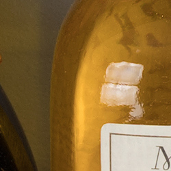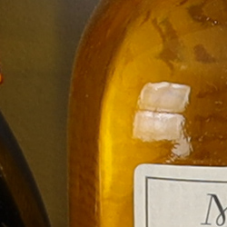 Looking closely at the images, we can see ACR extracts additional detail that isn't present in the default JPEG from the camera, particularly in the red-leaf and pink swatches where some of the fine thread pattern is likely treated as noise by the JPEG engine and thus blurred away. Fine detail in the mosaic crop is also slightly improved, but as is often the case, the conversion isn't as clean and smooth looking, with more noise that can be seen for instance in the flatter areas of the bottle crop. You can of course apply stronger noise reduction (default ACR NR used here) to arrive at your ideal noise versus detail tradeoff. Also notice that sharpening haloes aren't as visible as the default camera output, and overall contrast is lower. Not bad in-camera default JPEG processing, but as usual you can do better by shooting in RAW mode and using a good RAW converter.