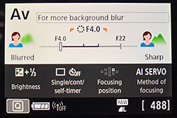 The SL2 will tell you how to adjust your camera for more or less background blur. Additional illustrations include ones showing how to blur or freeze motion when shooting shutter speed priority mode. |