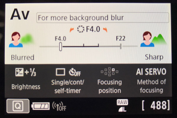 The Canon SL2 describes its shooting modes so that beginners can better understand what impact different settings will have on the final image. |