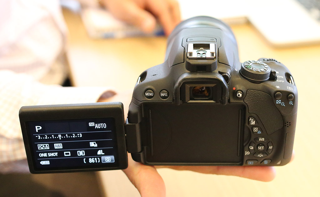 Display. The 3-inch, LCD touchscreen monitor is the same as the one on the T4i, offering 720 x 480 pixel resolution (1,040,000 dots) and the ability to flip out, side swivel, and tilt into different positions to help compose shots from difficult angles.