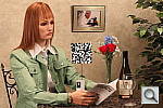 This shot duplicates indoor shooting conditions in most US homes, with fairly bright incandescent room lighting. The challenge here is for the camera's flash to blend naturally with the room lighting, and produce good, neutral color overall. - Some cameras will be overly affected by the room lighting, even with their flash enabled, and the result will be a strong orange cast. Another common failing is for the highlights from the flash to take on an unnatural bluish cast.
