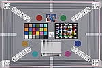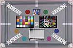 Our new "Multi Target" was first put into use in April, 2009, replacing the earlier "interim" design. This target incorporates a number of elements that combine aspects of the previous Multi target, as well as the previous Viewfinder Accuracy or "VFA" chart. Here's some of what you'll find in this target: Framing marks: This chart evolved from the earlier Viewfinder Accuracy chart, so one of its major uses is to measure viewfinder accuracy. (See notes in the Viewfinder Accuracy section, at the bottom of this page, for more information on this.) USAF resolution targets: An important use of this target is in evaluating lens quality, looking how well sharpness holds up as you move from the center to the corners of the frame. The little "USAF" resolution targets arranged at the center, in the corners, and along the diagonals are very useful for making fine judgements about blur, flare and aberrations in the image. We generally show crops of a USAF chip from a corner of the target and from the center, to show how lenses hold sharpness at wide and telephoto focal lengths. Alignment "bullseyes:" We find these graphics from the graphic arts world (used to align sheets of film in the old film-based prepress days) very useful for seeing chromatic aberration in lenses. The bold black/white elements are good for seeing the colored fringes caused by CA in the corners of the frame. MacBeth ColorChecker Chart: This is about as common a color standard as you can get these days, very widely available for only mildly exorbitant cost, and quite well controlled in its production. It thus serves as a good basis of comparison between cameras and between test setups. Imatest also understands the MacBeth colors very well, and uses them to produce its color accuracy map that we feature in all our reviews. MacBeth ColorChecker SG Chart: The ColorChecker SG chart provides a wider range of colors, to give a more detailed map of a camera's color handling. We haven't begun using this chart in the color-accuracy graphs we routinely offer, but expect to do so at some point in the future. In the meantime, we sometimes refer to this chart internally, to get a more complete idea of what a camera's color map looks like. Log C/F Target: The progressive resolution pattern located just below the center of the target is a Log C/F (logarithmic contrast vs spatial frequency) chart. Digital camera noise reduction routines work by looking at levels of local contrast, flattening-out detail at progressively lower spatial frequencies as the local contrast decreases. (This is very commonly seen in human hair, grass, foliage, and other subjects with subtly-contrasting fine detail.) This chart lets Imatest analyze just how a camera makes the tradeoff between contrast, detail, and image noise. Color Starbursts: The six circular starburst elements arranged around the target are intended to reveal de-mosaicing artifacts and color-dependent resolution issues. The six starbursts provide examples of each combination of RGB colors intersecting each other. (That is, red, green, and blue against black, plus red against green, green against blue, and blue against red.) Given that the most common sensor RGB color filter pattern (the so-called Bayer) pattern has twice as many green pixels as red or blue, you'll generally see that the green/black starburst shows the best resolution, while the blue/red one shows the worst. The effects of different sensor geometries and color filter array patterns will be revealed here. Musicians Image: Synthetic test patterns only tell you so much. While we have a lot of pictorial images in our other test targets, we thought it would be useful to include a small "natural" image here as well.
