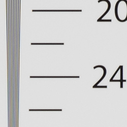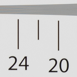 Our laboratory resolution chart revealed sharp, distinct line patterns down to about 2,300 lines per picture height in the horizontal direction, and to about 2,300 lines per picture height in the vertical direction as well. Complete extinction of the pattern occurred between 2,600 and 2,800 lines. Adobe Camera Raw wasn't able to extract any additional resolution, however it did extend complete extinction of the pattern somewhat while producing much higher amounts of color moiré. Use these numbers to compare with other cameras of similar resolution, or use them to see just what higher resolution can mean in terms of potential detail.