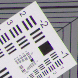 As can be seen above, actual barrel distortion at wide angle is quite high at about 1.6%, while pincushion at telephoto is fairly high, at about 1.0%. We expect this for smaller interchangeable lenses though, so it's nothing to be concerned about unless you are using a raw converter which does not understand the embedded "opcodes" to perform distortion corrections automatically. Most raw converters these days (including Adobe Camera Raw and SilkyPix) are capable of applying distortion correction automatically, as specified by the manufacturer. There is however going to be some loss of resolution in some areas of the frame as a result of such correction, because pixels are being "stretched" to correct for the distortion. Obviously, a lens that doesn't require such correction, and is also sharp in the corners to begin with would be preferable, but relaxing constraints on distortion brings other benefits in the lens design, such as a very compact design.