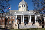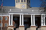 Far-Field Test 2 While the House poster in the shot above provides absolute repeatability from test to test, it doesn't offer the range of brightness (dynamic range) that the original scene had, nor does it contain the nearly infinite range of fine detail found in nature. For these reasons, we shoot an outdoor photo of a building, to provide a more challenging (if more variable) subject for the cameras. Until Summer of 2011, we used the original house from the House poster for this "Far Field" shot, but the ever-encroaching trees made it less and less useful. The coup de grace for that subject was when the neighbor across the street relandscaped his yard so we could no longer shoot from our original position. In place of the original house, we've switched to using the Roswell, GA City Hall building, which offers many of the elements of the original Far Field subject, but in a setting where we're guaranteed access into the future, and without the threat of trees eventually obscuring the building. In this shot, we look at how the camera handles rendering of subtle detail (the bricks, both in the sunlight and in the deep shadows under the entryway roof), how it handles bright highlights (the white columns and reflections from the dome), and shadow detail (in the dark areas beneath the shrubs on either side of the steps). Note though, that because this is shot outdoors, the character of the light is unavoidably going to change quite a bit, depending on the atmospheric humidity and the time of year. - You thus shouldn't rely on it for absolute comparisons between cameras, since it's unlikely that conditions will be exactly the same from one test to the next.