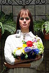 This shot duplicates indoor shooting conditions in most US homes, with fairly bright incandescent room lighting. The challenge here is for the camera's flash to blend naturally with the room lighting, and produce good, neutral color overall. - Some cameras will be overly affected by the room lighting, even with their flash enabled, and the result will be a strong orange cast. Another common failing is for the highlights from the flash to take on an unnatural bluish cast. Finally, exposure is important here, and frequently a tough challenge for the cameras. The model's white shirt is central in the scene, reflecting a lot of the light from the flash right back at the camera. As a result, most cameras underexpose this shot, and require some positive exposure compensation to produce a good result. - And that's an important consideration in itself: Does the camera even permit adjustment of its flash exposures? Many do not. These photos are a tough exposure challenge, if they come out OK, the camera in question can probably be coaxed into delivering a good flash exposure of any subject within its range. Note too, that the normal flash shot (as opposed to the slow sync one, if the camera offers that feature) will be sharply rendered, any subject or camera movement frozen by the quick pop of the flash. That makes this shot a good one to look for the effect of over-aggressive noise suppression in the model's hair. To view the exposure series from zero to +1.0 EV in the normal flash mode, see files XT1INBFP0.HTM through XT1INBFP3.HTM on the thumbnail index page. To view the same series in the Slow-Sync flash mode, see files XT1INBFSP0.HTM through XT1INBFSP3.HTM on the thumbnail index page. |