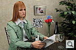 This shot duplicates indoor shooting conditions in most US homes, with fairly bright incandescent room lighting. The challenge here is for the camera's flash to blend naturally with the room lighting, and produce good, neutral color overall. - Some cameras will be overly affected by the room lighting, even with their flash enabled, and the result will be a strong orange cast. Another common failing is for the highlights from the flash to take on an unnatural bluish cast. Finally, exposure is important here, and frequently a tough challenge for the cameras. The model's white shirt is central in the scene, reflecting a lot of the light from the flash right back at the camera. As a result, most cameras underexpose this shot, and require some positive exposure compensation to produce a good result. - And that's an important consideration in itself: Does the camera even permit adjustment of its flash exposures? Many do not. These photos are a tough exposure challenge, if they come out OK, the camera in question can probably be coaxed into delivering a good flash exposure of any subject within its range. Note too, that the normal flash shot (as opposed to the slow sync one, if the camera offers that feature) will be sharply rendered, any subject or camera movement frozen by the quick pop of the flash. That makes this shot a good one to look for the effect of over-aggressive noise suppression in the model's hair. To view the exposure series from zero to +1.0 EV in the normal flash mode, see files X100SINBFP0.HTM through X100SINBFP3.HTM on the thumbnail index page. To view the same series in the Slow-Sync flash mode, see files X100SINBFSP0.HTM