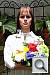"Sunlit" Portrait The lighting in this shot is deliberately awful, about what you'd expect from noontime sunshine here in the Atlanta, GA area. (In fact, the color balance has been chosen to pretty well match the hazy sunshine here in mid-August.) The reason for the harsh lighting is to provide a real "torture test" of how cameras handle conditions of extreme contrast; and in particular, how well they do holding onto highlight detail. Look for:
