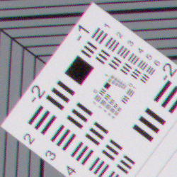 To see how much correction is taking place in the camera, we converted RAW files from the above shots with RawDigger, which does not correct for distortion. As you can see at wide angle, barrel distortion much higher, at about 2.1%, while full telephoto shows about 0.4% pincushion distortion.