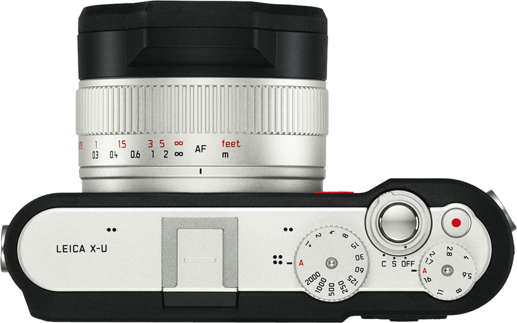 The Leica X-U has a built-in flash, but to help maintain structural integrity as well as to maximize range underwater, the integrated flash is located above the front of the lens rather than on top of the camera body.