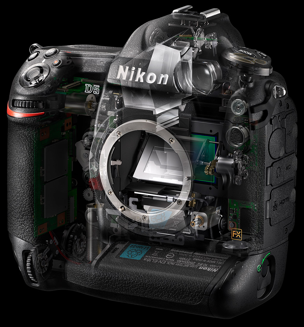 The Nikon D5 utilizes a brand-new, 20.8-megapixel full-frame CMOS sensor and a new, faster EXPEED 5 image processor. This new higher-resolution sensor -- up from the 16.2MP chip of the D4-series -- includes an optical low-pass filter and also includes an anti-reflective coating to minimize ghost and flare.