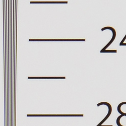 Our laboratory resolution chart revealed sharp, distinct line patterns up to about 2,550 lines per picture height in the horizontal direction, and to about 2,550 lines per picture height in the vertical direction in JPEGs. (Some might argue for higher, but lines begin to merge at those resolutions.) Complete extinction of the pattern didn't occur until around 3,400 lines with signs of moiré/false color suppression. We weren't able to extract any more resolution with RAW files processed through Adobe Camera Raw, though the ACR conversion contained more color moiré than the in-camera JPEG images, so the camera's processing does a decent good job suppressing it. Use these numbers to compare with other cameras of similar resolution, or use them to see just what higher resolution can mean in terms of potential detail.