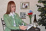 "Sunlit" Portrait The lighting in this shot is deliberately awful, about what you'd expect from noontime sunshine here in the Atlanta, GA area. (In fact, the color balance has been chosen to pretty well match the hazy sunshine here in mid-August.) The reason for the harsh lighting is to provide a real "torture test" of how cameras handle conditions of extreme contrast; and in particular, how well they do holding onto highlight detail. Look for: